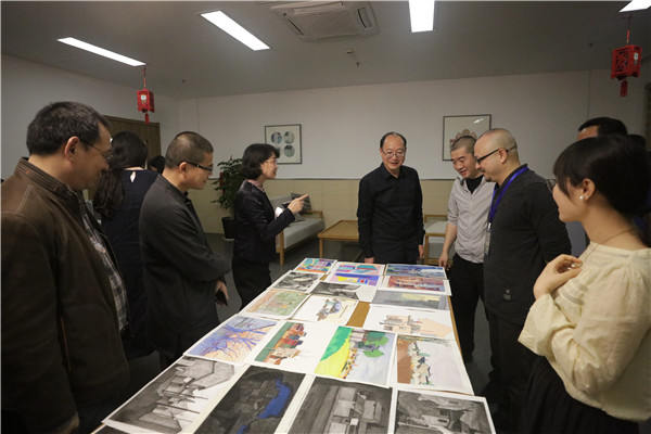 胡钟华一行在我校专业基础教学部主任曹晓阳的陪同下观摩了解了同学们的下乡实践成果。