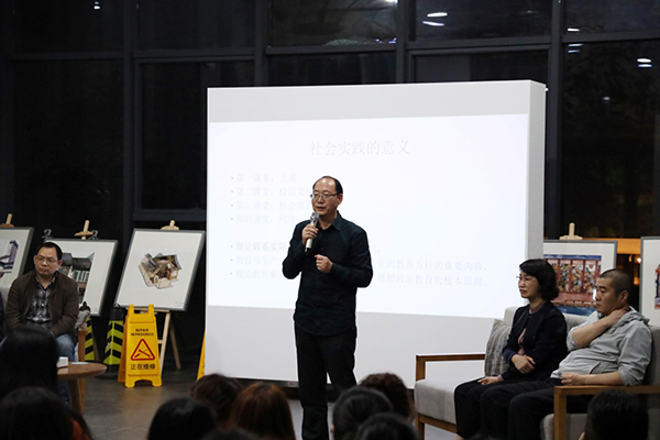 课程开始前,胡钟华发表讲话。他对同学们在下乡实践中已取得了成果表示肯定和祝贺,并向带队的指导教师们表示敬意和感谢。讲话中,他用吴冠中先生的故事激励同学们在艺术创作时不忘人民之情,吴冠中先生曾说过:“风筝不断线。”牵引着风筝的那条线便是人民的情谊,吴冠中先生毕生探索创作无数艺术精品力作,但他曾多次向世界的艺术机构捐赠作品,将最好的艺术作品留给人民。下乡实践便是扎根生活进行艺术教学和创作的生动实践。