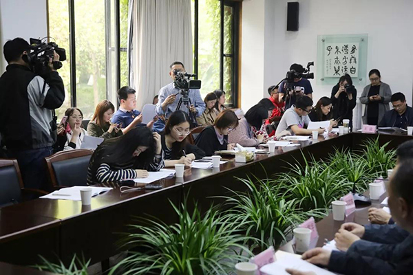 4月28日下午,2019首届之江国际青年艺术周新闻发布会在我校南山校区召开。我校副院长王赞、副院长高世名、浙江省委宣传部文艺处副调研员张歌、西湖区人民政府副区长缪凌蓉、浙江省文学艺术界联合会创研处处长郑晓林、杭州市委宣传部文化处副处长刘彦辉、浙江音乐学院流行音乐系副主任王滔以及我校党委宣传部、教务处、学工部、跨媒体艺术学院、设计艺术学院、建筑艺术学院、视觉中国协同创新中心等相关部门负责人出席发布会,向现场媒体介绍2019首届之江国际青年艺术周情况。新闻发布会由我校党委委员、宣传部长傅巧玲主持。