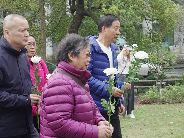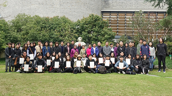 颁奖仪式后,所有参会人员向矗立在南山文化广场的夏朋烈士雕像献上小白花,并合影留念。随后,乘车前往玉皇山莲花峰祭扫了夏朋墓。重温校史,缅怀先烈,这是所有国美学子在清明来临之前对夏朋烈士最好的纪念。