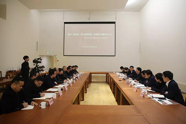 在与学校党政领导班子成员座谈时,黄建发指出,中国美术学院建校91年来秉承初心和使命,走出了一条不平凡的“国美之路”。学校要始终牢记习总书记在浙江工作期间作出的支持中国美术学院“向世界一流大学目标挺进”的指示和嘱托,继往开来,继续奋斗,不断开创新时代中国美术学院的新篇章。他强调,要进一步加强政治建设,深入贯彻落实习近平总书记在学校思想政治理论课教师座谈会的讲话精神和全省教育大会精神,推进新思想进学术、进学科、进课程、进培训、进读本,真正将社会主义的核心价值观融入到艺术教育和创作中,结合学校历史、专业特色、大师精神开展富有美院特色的思政教育,大力培养德艺双馨的艺术人才;要进一步加强“双一流”建设,紧盯目标任务,趁势而上,优化整合资源,建强优势学科,加快创新发展,加强人才培养,全面推进世界一流大学建设;要进一步提升学校引领创新服务地方的能力,立足优势,围绕省委省政府提出的“八大万亿产业”发展战略,汇聚联动艺术和科学的创新力量,助力“浙江制造”向“浙江智造”的转型,为“六个浙江”建设作出新的更大贡献。