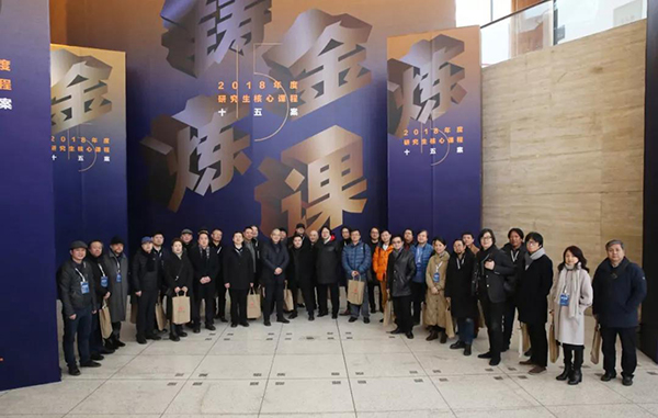 委员们参观“铸金炼课——2018年度研究生课程十五案”