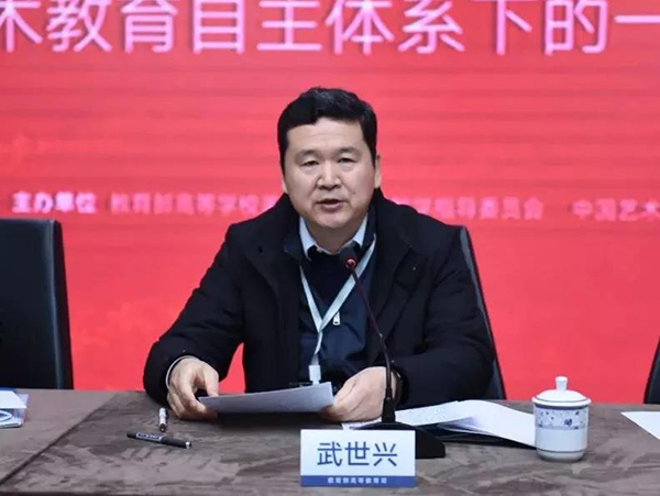 武世兴代表教育部高等教育司对新一届美术学教指委的成立表示祝贺,对上一届美术学教指委的工作给予肯定,并对本届教指委的工作提出要求。他指出,本届教指委是在全面贯彻全国教育大会精神、全面落实立德树人根本任务、全面建设本科教育的大背景下成立的,因此教指委的要求更高、责任更重、工作更实。武世兴对本届美术学教指委工作提出了三点希望:一是聚焦一流专业建设;二是聚焦一流课堂建设;三是聚焦艺术类卓越人才培养。希望教指委全体成员群策群力、开拓创新,共同推进美术学专业的创新发展,为全面振兴本科教育做出新的重大贡献。