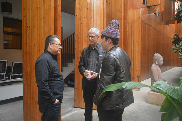 会后,Stephen Beal一行参观了象山校区,重点走访了建筑艺术学院、跨媒体艺术学院开放媒体实验室、手工艺术学院及中国国际设计博物馆。我校建筑艺术学院院长王澍与Stephen Beal深入讨论了未来合作课程或项目的可能性,跨媒体艺术学院副院长姚大均播放并介绍了学生作品,手工艺术学院副院长汪正虹带领并参观了手工艺术学院陶艺、玻璃、首饰等工作室。