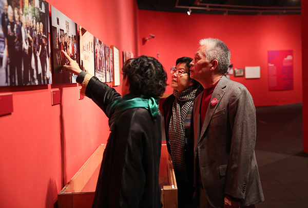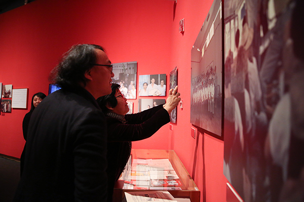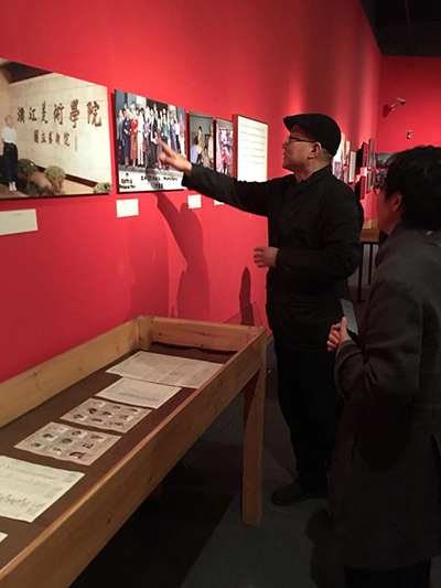 我校党委书记钱晓芳宣布展览开幕,院长许江于开幕前一天到现场观展,副院长高世名作《国美无疆,四海艺同》讲话,浙江省国际交流协会会长蒋胜祥,浙江省外事办出国管理处处长陶允冀,校相关职能部门、教学单位负责人,任道斌、叶尚青、卓鹤君、闵学林、王冬龄、吴宪生等参与国际教育学院教学的老教授,及国际教育学院师生出席开幕式。1984年首届外国短训班学员Steve Erickson发表自己学习、重返杭州的感想。开幕式由国际教育学院院长金志林主持。