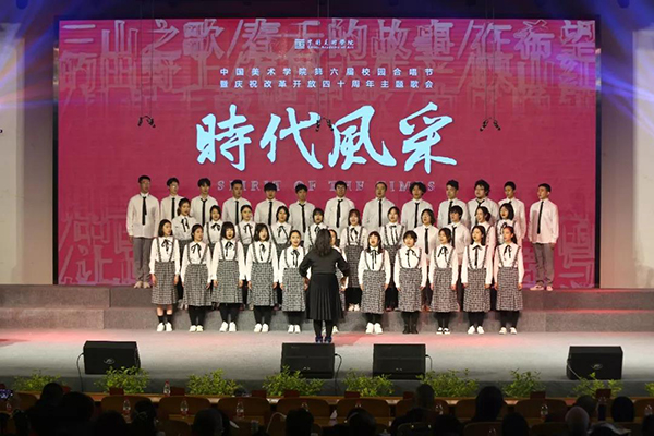 改革开放的四十年,也是我校改革发展、实验理想的黄金时期。一代代师生以“解放思想、自觉改革”的时代精神,秉持“继承、融合、创新”的发展之路,建设以东方学为特征的世界一流学科,创立以艺术创造为内核、社会美育为担当的新人文教育体系,开拓了特色鲜明、内涵丰富的国美之路。为庆祝改革开放四十周年,12月7日,我校举办“时代风采”——第六届校园合唱节暨庆祝改革开放四十周年主题歌会,唱响四十年辉煌成就,抒发爱国爱校热情。