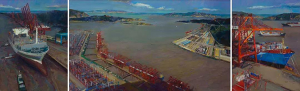 东方大港 宁波—舟山港 杨参军 卢家华 王敏杰 油画 200cm×150cm×2 200cm×350cm-4