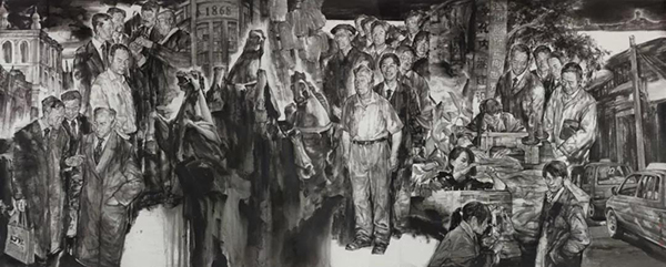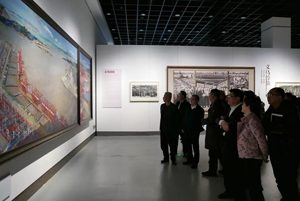 “百年追梦”浙江美术书法创作精品工程,是浙江省美术创作团队和美术家、书法家的总动员。艺术家们在创作过程中,涌现了许多感人的事迹,我校绘画艺术学院副院长孔国桥接到《义乌经验》创作任务时,也深感要把一座城市历时近40年的复杂发展经历和成功经验,浓缩在一幅直观的绘画作品之中,是一项极具挑战意义的创作任务。创作团队数次赴义务现场调研,几度易稿,最终确定了以人物为表现主体的创作宗旨,以义乌最具特色、同时也是最具影响力的义乌小商品市场的发生、发展过程为作品的构思主线进行创作。
