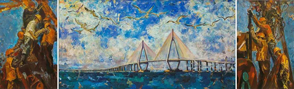 杭州湾跨海大桥 井士剑 油画 170cm×110cm×2 170cm×330cm-1
