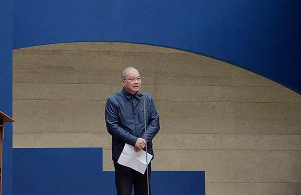我校教授、本届双年展联合策展人张捷在致辞中介绍了屏风的历史,屏风从早期的立式,到后来的折叠式、壁挂式,屏风的式样和材质也逐渐变得多元而丰富,如座屏、围屏、插屏、折屏、挂屏等等。随着屏风的形制、功能、尺寸的不断改变,它的摆放位置也发生了变化,营造出一种神秘而隐性的文化氛围。如今,我们的生活方式发生了巨大的改变,渐渐远去的屏风也不再是我们如影随形的日常,在全球化文化格局中,“东方艺术精神”在不断地放大,还是在逐渐地削减?传统文化又以怎样的姿态走向未来?以“和风屏山”为主题的第五届杭州中国画双年展,正是这个时代温故而知新的多元文化诠释。