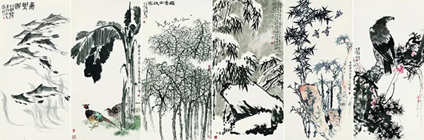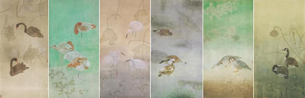 孙其峰 花鸟六屏 1995年 纸本 138cm×69cm×6