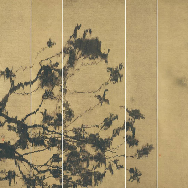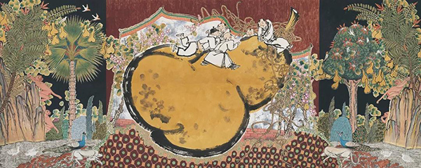 董小明 棠樾 2018年 漆板绢本 180cm×60cm、180cm×30cm×4