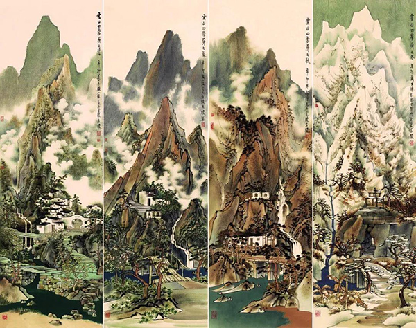 方骏 云山四季屏 2011年 纸本 147.5cm×46cm×4