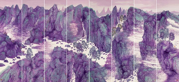 许江表示,杭州中国画双年展拈出中国绘画的形式生态,由写意、横卷、册页、中堂等形式切入,来考察中国绘画的特质,从中检省绘画与其物质性周遭的关联和实践,突破笔墨图像与实物原境之间的界分,为中国画的时代创造围伐出一片新的天地。屏风既是实物,也是一种图像;既可以分割实际的建筑空间,也可以构造出象征性的社会空间;既具有现实之功用,又是通往图像世界之入口。参展艺术家们以屏风为创作媒介,深入挖掘屏风的历史内涵与表现潜能,共同探讨屏风的空间意识与场所精神。本届主题为“和风屏山”。屏风,很自然地被摆在了本届双年展策划思考的界面上。这屏上的“画”既是“山”又是“风”,既是建造般的实物,又是延绵传递的意境。整个展览正是这样一个特殊的“重屏”,它用屏风的断与连构成一个延绵不绝的巨构,一个滋养众生感受力的动人原境。我们身在“重屏”中,我们就在“和风屏山”之中。