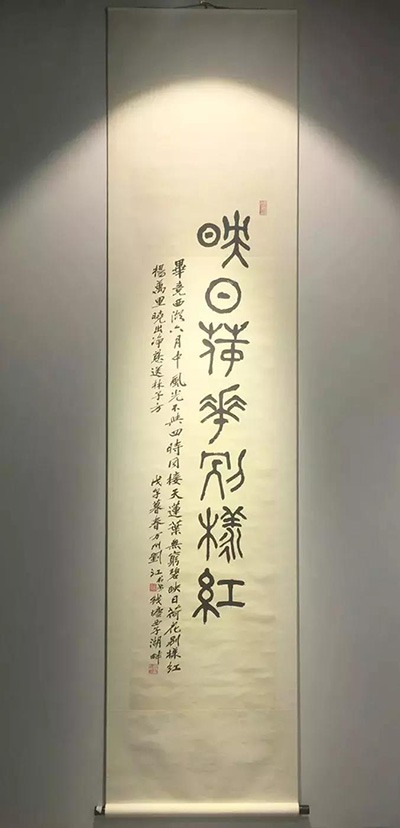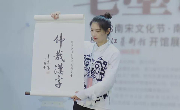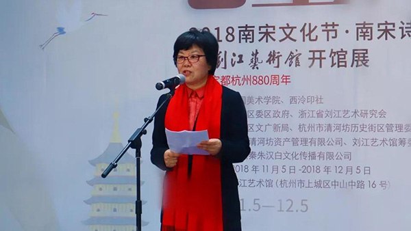 11月5日上午,位于杭州中山中路16号的刘江艺术馆揭幕开馆,“笔墨诗心——庆祝南宋建都880周年南宋诗词书法展”的60余幅作品在馆内展出。李岚清同志专门发来贺词“伟哉汉字”对开馆及展览开幕表示祝贺。我校党委书记钱晓芳出席展览并致辞。