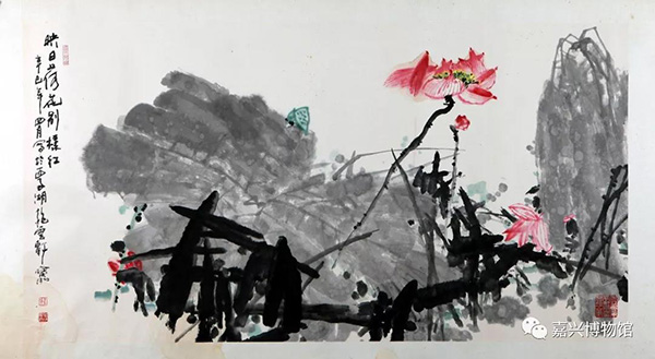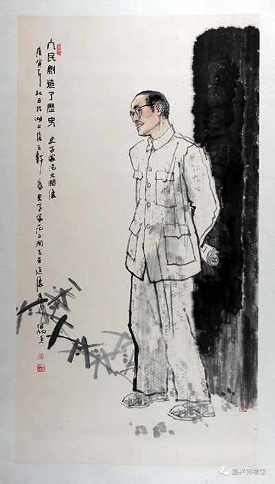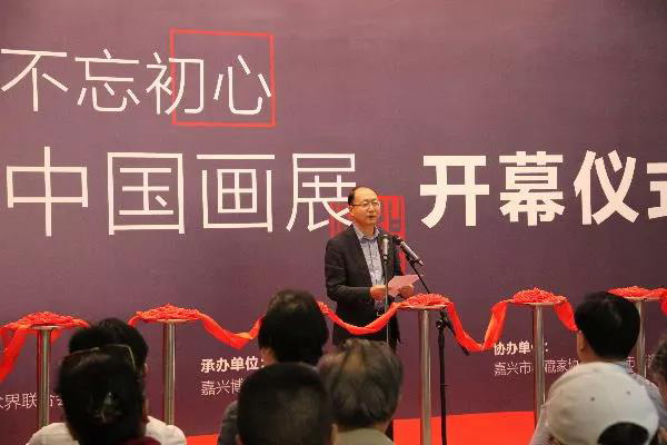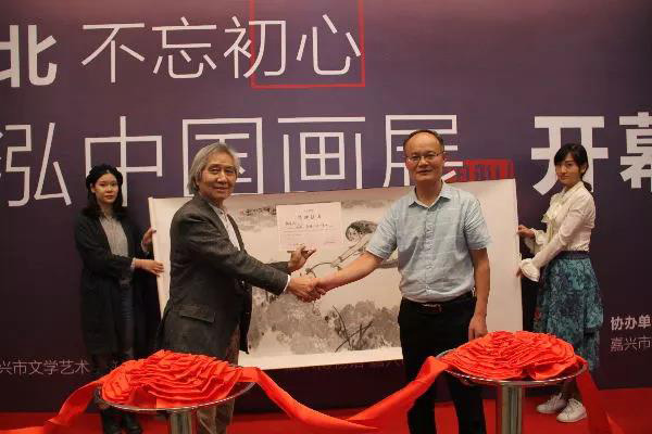 在开幕式上,程宝泓先生还向嘉兴博物馆捐赠作品《南湖之恋》。他用饱蘸深情的笔墨抒发着对家乡的人文情怀,运笔于质朴乡情,以精美的书画作品向家乡人民汇报。