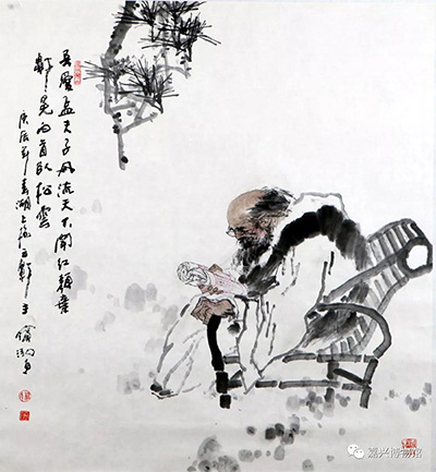 本次展览共展出程宝泓书画作品80件,富含写意人物画艺术真谛,无论直接取材于现实生活的《柳荫》《桃花渡口》《蚕娘》《维族老汉》 ,或者借古达志的《我爱孟夫子》《朋友就像老酒》《研朱点周易》等古意人物画,其作品水墨莹润舒畅,用笔遒劲 ,气韵贯通,或张扬或内敛,准确精致的造型与放笔挥洒的写意笔墨相结合,既有黄瘿瓢的率真豪放又多了一份清润隽永的书生意气,创造出清韵交织的氛围。