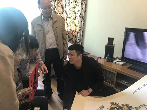 中国画与书法艺术学院学生党支部也特地为赵老师创作了贺寿的清供图,财务处副处长张志明代表财务处后辈带给赵老师百岁祝贺。