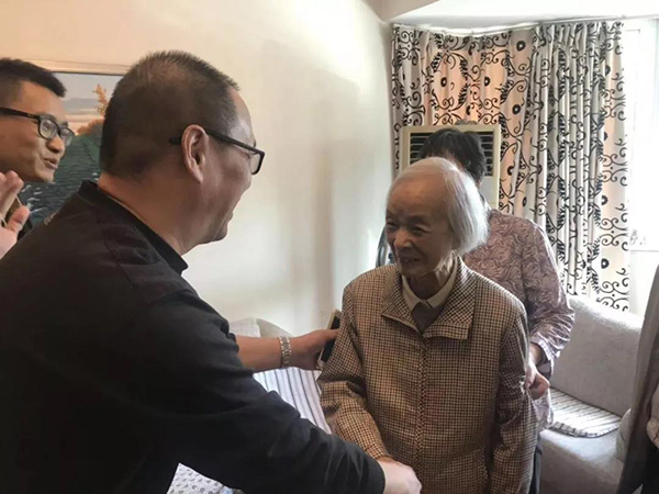 10月17日重阳节,为进一步营造尊老、爱老、敬老的光荣传统和良好风尚,确保退休教师们过一个安定、祥和的节日,我校党委副书记胡钟华带领离退办、计划财务处、中国画与书法艺术学院学生党支部师生走访慰问了百岁老人——财务处退休教师赵茂椿。同时,也代表学校给赵老师祝了百岁寿,献上了寿桃和蛋糕。