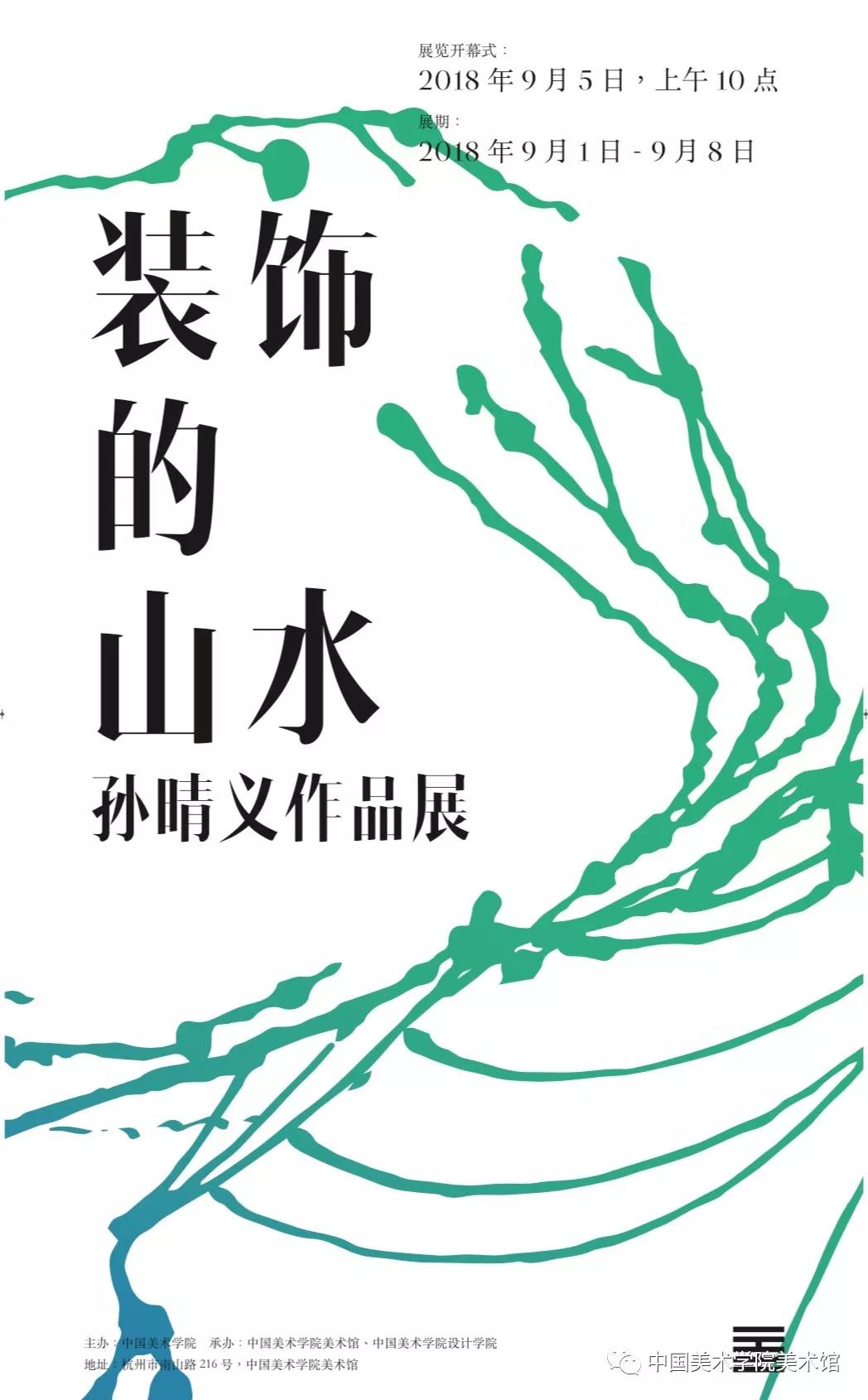 2018年9月5日上午,由中国美术学院主办,中国美术学院美术馆、中国美术学院设计学院承办的「装饰的山水——孙晴义作品展」在中国美术学院美术馆开幕。中国美术学院党委书记钱晓芳代表学校接受捐赠,院长许江致辞。