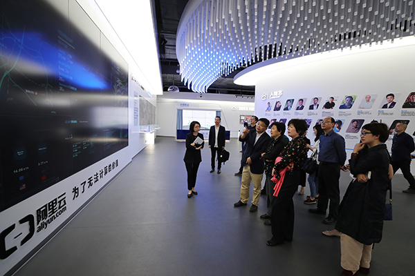 在云栖小镇,党委班子成员详细了解了小镇基于云计算大数据产业的特色和发展历程。云栖小镇围绕云计算产业构建的“共生、共荣、共享”的生态体系、创新创业的文化内涵,尤其是云栖大会、阿里云杭州城市大脑、富士康科技集团的八大智造平台、智能家居体验、5G车联网项目等高新尖科技,给他们留下了深刻的印象。他们纷纷表示,中国美院要顺应“互联网+”趋势,与云栖小镇加强互动,找出交集,发挥自身优势,在科艺融合上做好文章,为提升浙江制造、实施创新驱动发展发挥更大的作用。
