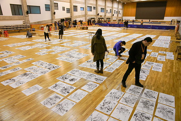 3月19日,中国美术学院2018级本科招生考试最后一轮阅卷在象山校区进行。成千上万张画整齐排列在不同的分值区域内,情形堪比“海选”现场。
