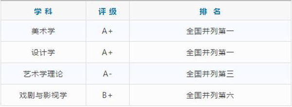 作为国内学科最完备、规模最齐整的第一所国立高等美术院校,中国美术学院的办学实力始终在全国艺术院校中稳居前列。2017年,中国美术学院入选国家「双一流」一流学科建设高校,美术学学科入选国家一流学科建设名单。在近期公布的教育部第四轮学科评估中,中国美术学院美术学和设计学均获得A+评级(排名全国并列第一),艺术学理论获A-(全国并列第三),戏剧与影视学获B+(全国并列第六)的优异成绩。入选A+等级数量为全国艺术学院校第一,夯实了学院在全国艺术院校中的标杆地位。