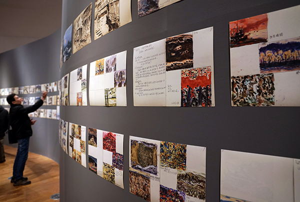 而这些创作手稿与艺术笔记也是本次展览的重要组成部分。通常的展览,观众看到的是最终的作品,也就是创作的最后结果,而这次则把“创作过程”全部解剖展开。据策展人闵罕透露,展览二楼为呈现“秘密工作”特地设计了两处“遮蔽空间”,一方一曲,外表如坚墙洗练,内部则大有乾坤。