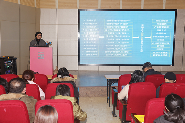 吴海燕从设计学科建设出发,解读了东方设计的理念,介绍了设计艺术学院实验中心建设与发展规划。她指出设计学今后将不再是单一的学科,而要注重学科交叉、协同创新、服务社会发展,学科的交叉融合将会迸发出更多新的思想。