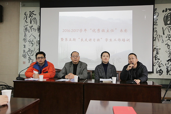 1月16日下午,我院在南山校区举行了2016-2017学年优秀班主任表彰暨第五期“良友讲习班”学生工作培训,党委副书记胡钟华参加了表彰会并为优秀班主任颁发荣誉证书。会议由学工部副部长潘晓蕾主持。