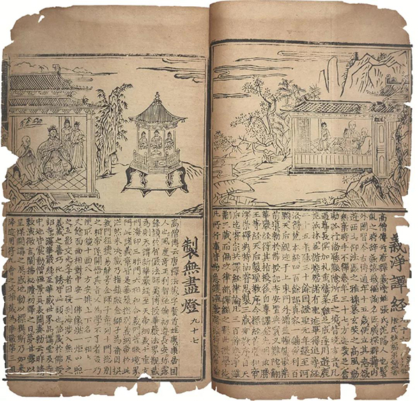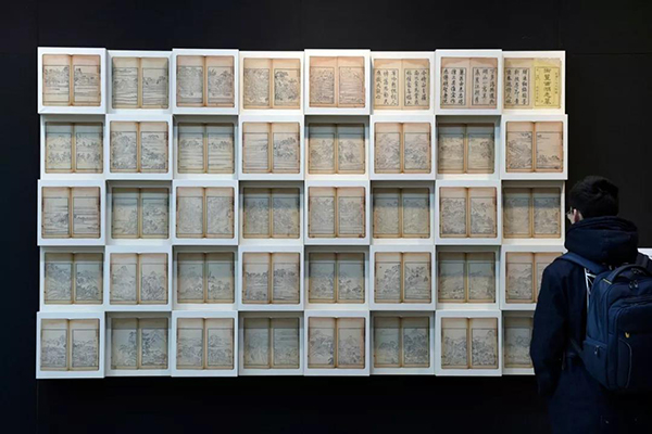 第一版块:版刻千秋——中国传统水印版画,以代表性的古典版画图像、大型雕版实物装置作品以及古籍文献呈示水印艺术的演进历程,为整个大展提供一个悠远的时间背景。展品包括汉传、藏传以及西夏时期的不同经卷,意在反映传播的广远性。此外,还特别选取陈洪绶《西厢记·窥简》一图为蓝本,以动漫、影像手段进行活化再造,挖掘历史图像的表现潜力,探寻古今图像传播和接受方式的内在关联。随着传统水印技艺的不断精进,“书画仿制”体系也应运而生,从历代各类书画谱发展到后世以书画仿制见长的“荣宝斋”“朵云轩”专营机构,再到以技艺传承和艺术创作实践为主旨的“紫竹斋”(中国美术学院)等院校工作室,构成了与当代水印的审美和技艺发展历程最为切近的发展脉络,此类作品也一并纳入其中。