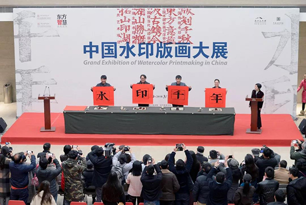 1月19日,由浙江美术馆、中国美术学院主办的“水印千年——中国水印版画大展”开幕。展览分为版刻千秋、汲古镌今、东方意蕴、拓山印湖、湖山胜概五个板块,展出的140余幅精美作品无不鲜明地体现出中华民族意境自然的艺术特色与东方文化含蓄隽永的美学品格。