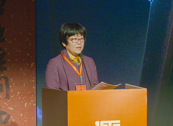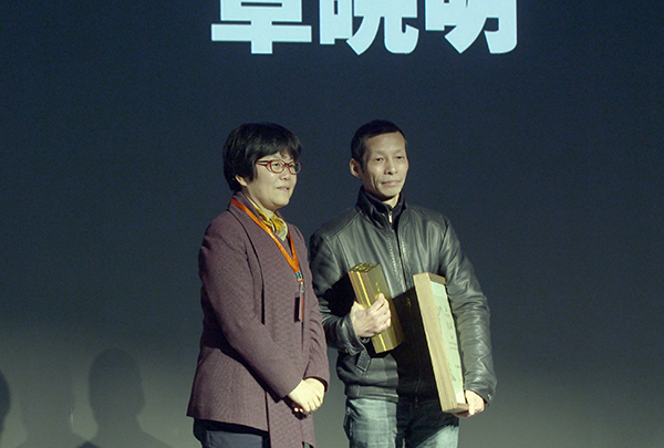 钱晓芳为跨媒体艺术学院教授张培力颁发哲匠奖