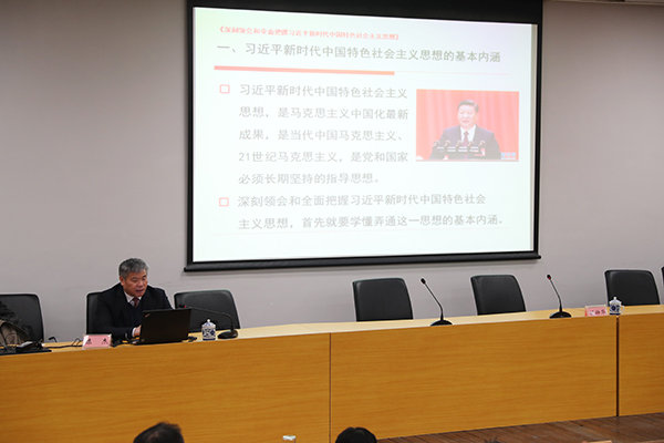 随后,省委教育工委讲师团成员、浙江工业大学党委委员、副校长陈杰作关于“深刻领会和全面把握习近平新时代中国特色社会主义思想”专题辅导。陈老师指出,习近平新时代中国特色社会主义思想,是我们党在深入推进实践基础上的理论创新取得的重大成果,以全新的视野深化了对中国共产党执政的规律性认识,深化了对社会主义的规律性认识,深化了对人类社会发展的规律性认识,是党的指导思想的又一次与时俱进。