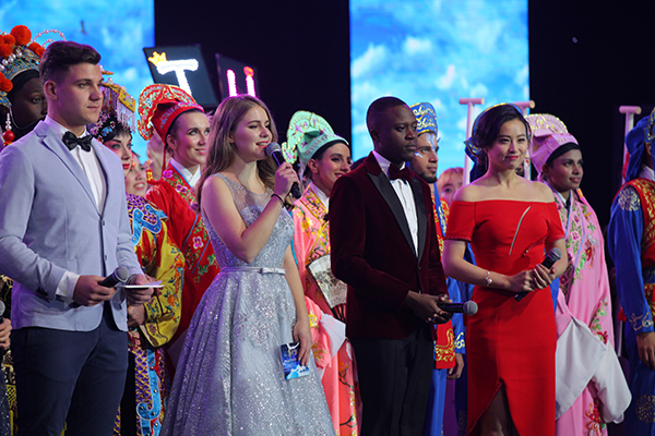 我校留学生小花/DUBROVSKA OLENA主持现场(左二)