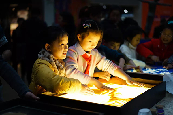 第三板块是美美讲堂艺术体验课,内容包含版画、沙画、首饰、扎染,观众可以在现场亲自感受一节有趣的艺术体验课。