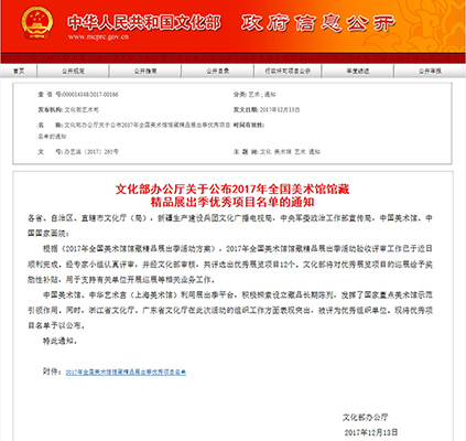 据悉,“2017年全国美术馆馆藏精品展出季”活动共吸引了全国66家各级各类美术馆申报,经专家组的严格评审,并经文化部审核通过,共有28个项目入选该活动,其中12个展览被评为优秀项目。