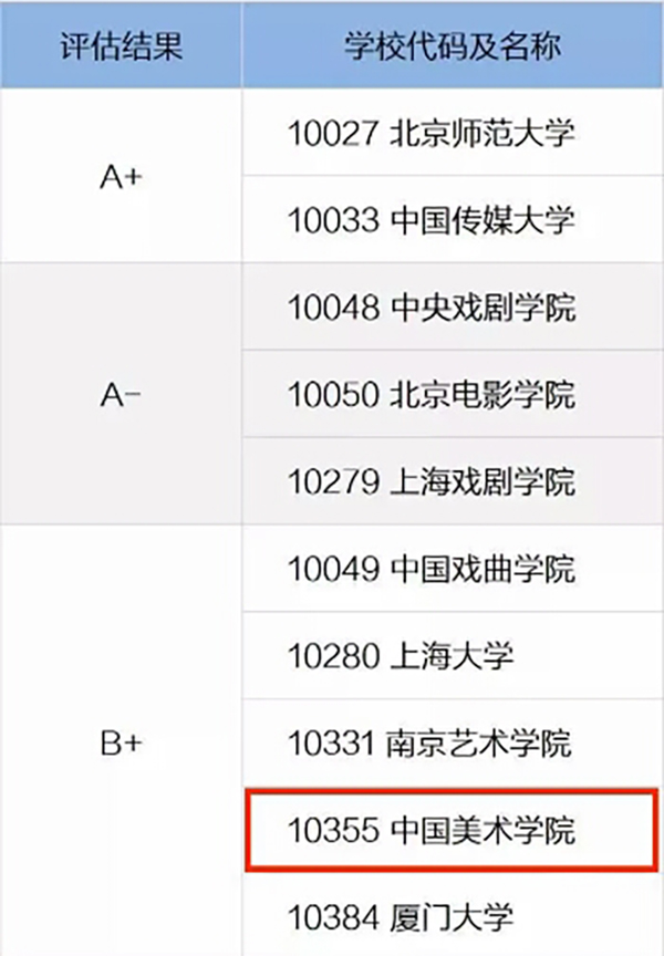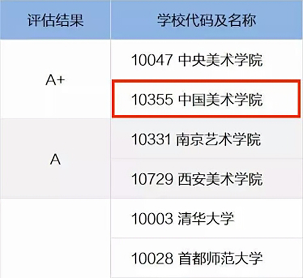 12月28日,教育部学位与研究生教育发展中心公布全国第四轮学科评估结果。中国美术学院在此轮学科评估中成绩喜人:美术学、设计学均获得A+评级排名全国并列第一;艺术学理论获A-评级,排名全国并列第三;戏剧与影视学获B+评级,排名全国并列第六。中国美术学院以一流的学科建设和优异的成绩,向建院九十周年献礼!
