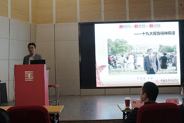 第一讲由中国浦东干部学院李德副教授主讲。他以《新时代—新思想—新征程》为题,针对青年教师如何在新时代的背景下“学懂、弄通、做实”十九大精神作了精彩的讲解。讲课中,他通过解读了十八大以来我党取得的历史性成就,分析当前世情国情,阐述了习近平新时代中国特色社会主义思想对于指导我们未来发展的重要意义,并强调学习贯彻党的十九大精神,一定要“原原本本地学、原汁原味的学”。