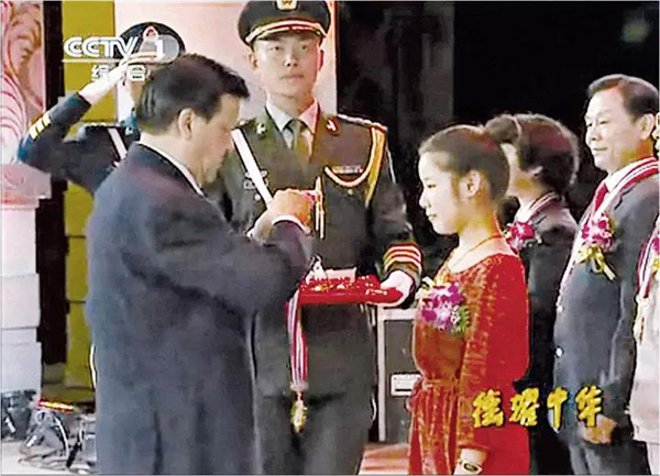 2011年9月20日,刘云山同志为全国道德模范、中国美术学院学生毛陈冰颁奖