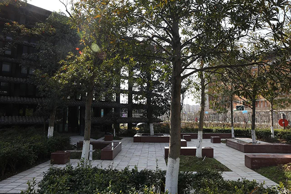 进行校园景观整体规划,设立校训石,建造名师纪念景观「巨匠广场」和「留法三剑客」,铺设名师名言地铺等,打造校园「风物志」