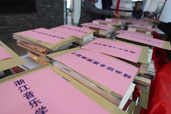 捐赠仪式上,吴山明教授回忆起美院一个非常好的传统,当年潘天寿、诸乐三、吴茀之三位老先生一起到外面收集采购古画上交学校,当时看起来不过是一件资料收集的工作,就跟送书一样,但他们在当时想到的是教育后代,能使我们的学生一代一代从中国传统的伟大艺术之中去吸取营养。这个举动实际上等于造了一条时空隧道,使得历史和文脉能够薪火相传,在这个新时代显示了艺术的力量。他希望这些书对于高校图书馆和美术馆等能起到小小的作用,给年轻学生们提供学习参考,并用实际行动呼吁中国美术学院从事艺术创作、教育的同仁也能将自己的著作捐献出来,发挥书籍更大的作用。