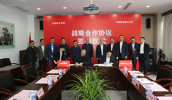 10月19日上午,我院与中国移动浙江公司战略合作协议签署仪式在学院南山校区八号楼一楼会议室举行。中国移动浙江公司总经理郑杰、副总经理楼向平,杭州分公司总经理王文生,我院院长许江、党委副书记胡钟华、党委委员、党院办主任徐国强等出席签约仪式。许江院长和郑杰总经理分别代表双方签署协议。仪式由宣传部副部长王益主持。党院办、宣传部、网络中心、学工部、校园建设和管理处等相关部门负责人参加签约仪式。