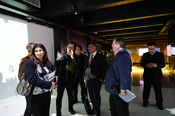 下午,高世名院长陪同访问团参观了了跨媒体艺术学院开放媒体实验室现场观摩学生作品。加州艺术学院代表一致表示希望和我院在相关领域开展合作。之后,高世名副院长陪同代表团参观影视与动画艺术学院。影视与动画艺术学院副院长刘志海为代表团简要地介绍了学院情况和西湖国际纪录片节。在观看了影院师生作品后,代表团一行表示非常期待明年参展。