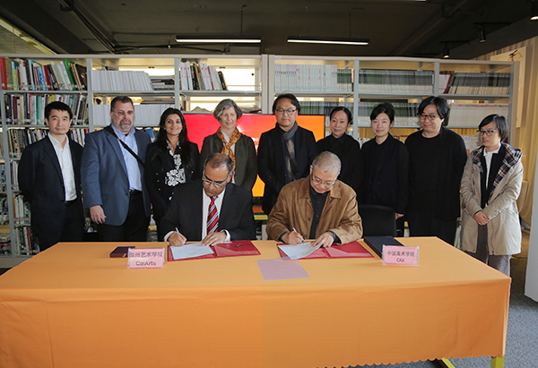 会谈后,许江院长与Rajan院长举行了两校战略合作签字仪式。战略合作的签订为两校今后各个层面的交流合作发展奠定了基础。同时,高世名副院长为Przyblyski副院长颁发了客座教授聘任书,并邀请其为中国美术学院中美国际班授课。