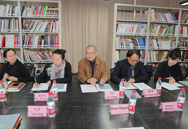 2017年10月30日上午,加州艺术学院院长Ravi Rajan、教务副院长Jeannene Przyblyski、外事副院长Maeesha Merchant、招生办主任Robert Borden等一行7人来访我院。我院院长许江在设计学院资料室热情会见了来访嘉宾。参与接待的还有我院副院长高世名,设计艺术学院、建筑艺术学院、外事处、教务处负责人等。
