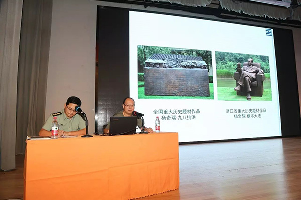 近年来,我们学校坚守教育与艺术「双重灵魂工程师」使命担当,高举「以人民为中心」的文艺旗帜,认真组织国家重大历史题材美术作品、中华文明上下五千年、「时代领跑者」、红军长征胜利80周年、「最美中国人」等全国重大美术创作工程,完成浙江省「百年追梦」、「红船颂」等主题创作和展览,举办《时代画卷》红色主题展览、出版画册,培育和打造「先锋号角」、「清风皓品」、「红色写生」、师生合唱节等校园红色文化品牌。充分发挥学科专业特点和人才汇聚优势,主动对接国家和省重大战略发展需求,主动承接国家和省市重点建设任务,主动谋划中国艺术学科和教育发展,积极承担国家和省重大主题性创作任务、创办「中国设计智造大奖」、牵头创建省级特色小镇「艺创小镇」、举办系列高端学术论坛和国际重大节展、介入和助推地方文创产业发展、服务「文化浙江」和「美丽浙江」建设。在浙江甚至在全国,走到哪里,你们都可以看到美院师生的作品,听到对美院的赞誉。我们始终以学院的力量、艺术的力量,在诠释文化自信、坚定文化自信和引领文化自信。