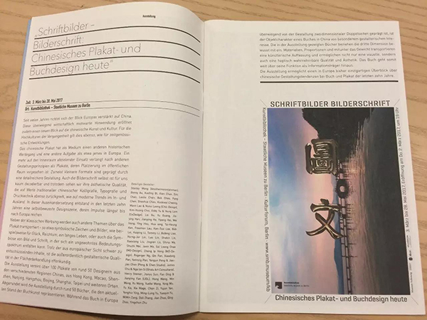 2017年3月至5月,「图文」展览从汉堡移师德国首都柏林,在柏林的国家博物馆群之艺术图书馆展出,这是这座建馆于1867年的德国国立文化机构,首次举办的中国设计展。