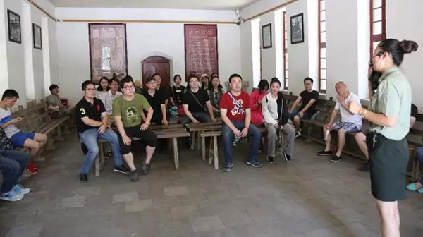 学员们在杨家岭革命旧址中央办公厅(延安文艺工作座谈会召开地)听取座谈会历史