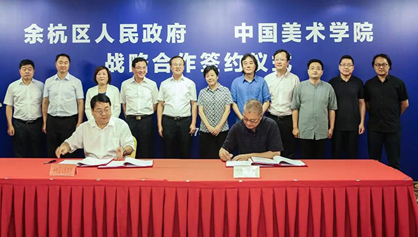 7月28日上午,中国美术学院与余杭区人民政府战略合作签约仪式在余杭区人民政府举行。仪式上,中国美术学院党委书记钱晓芳,院长许江,杭州市委常委、余杭区委书记毛溪浩分别致辞。区长陈如根代表余杭区政府,与中国美术学院院长许江签署战略合作协议。